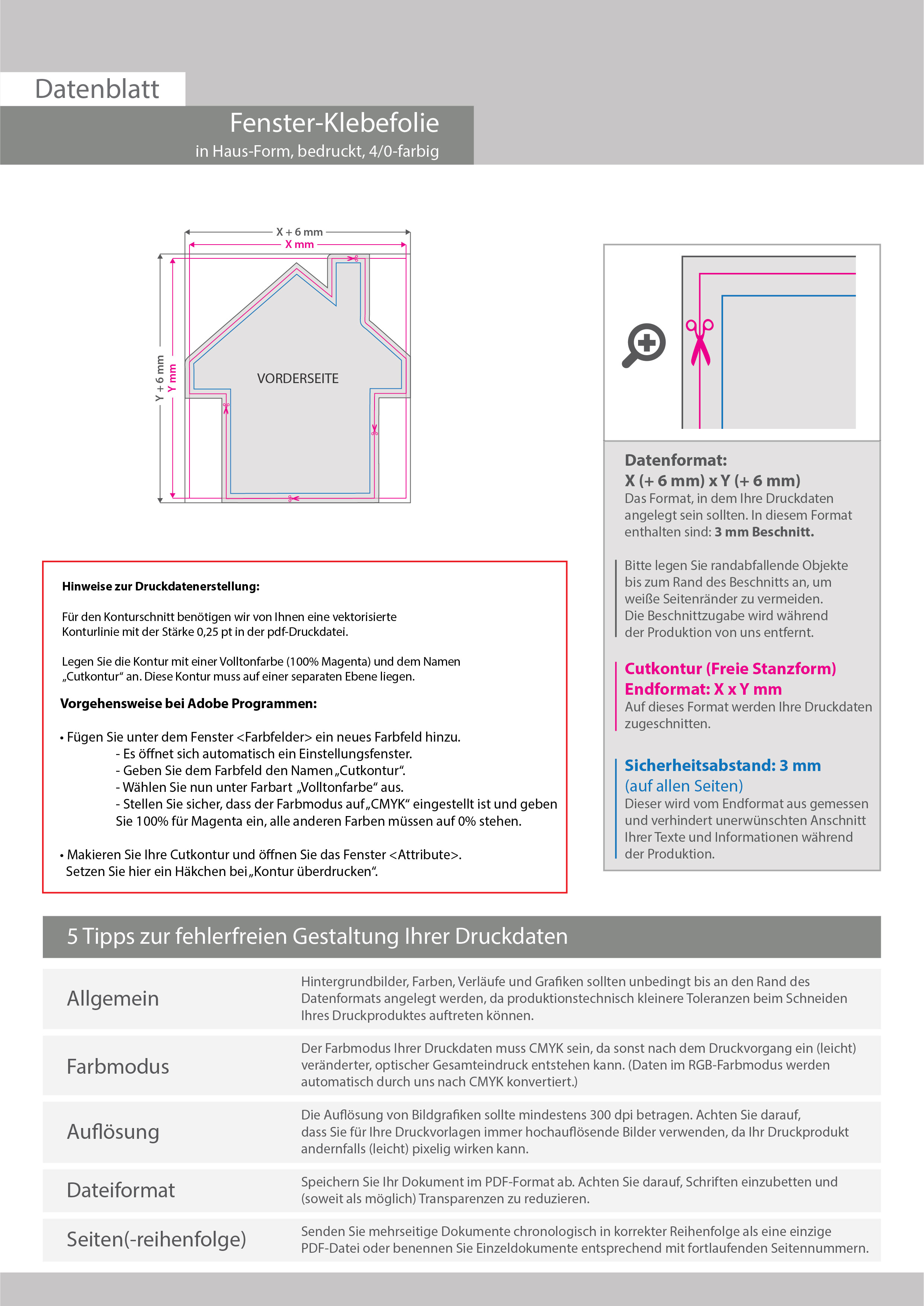 Fenster-Klebefolie 4/0 farbig bedruckt in Haus-Form konturgeschnitten
