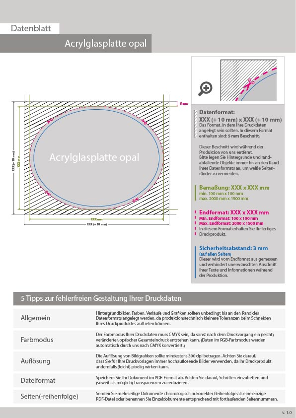 Acrylglasplatte opal oval (ovale Kontur), einseitig 4/0-farbig bedruckt